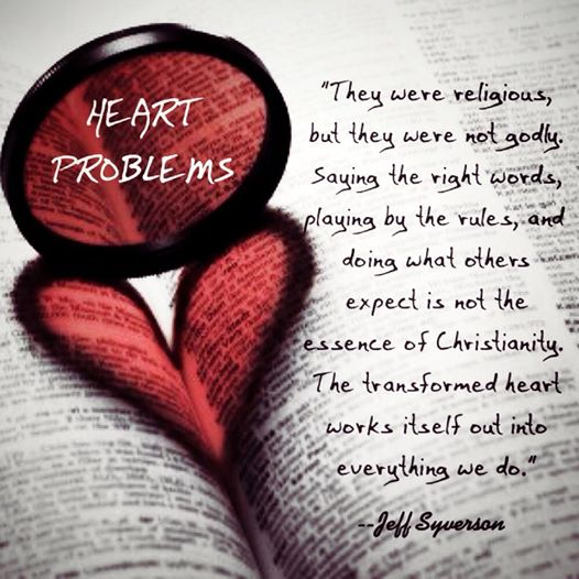 Saying the right words, playing by the rules, and doing what others expect is not the essence of Christianity. What God is looking for is a heart that is changed from the inside. The transformed heart then works itself out into everything we do.