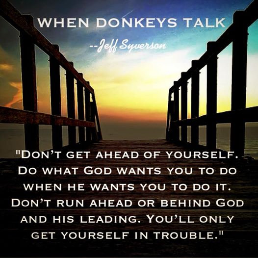 Don’t get ahead of yourself. Do what God wants you to do when he wants you to do it. Don’t run ahead or behind God and his leading. You’ll only get yourself in trouble.