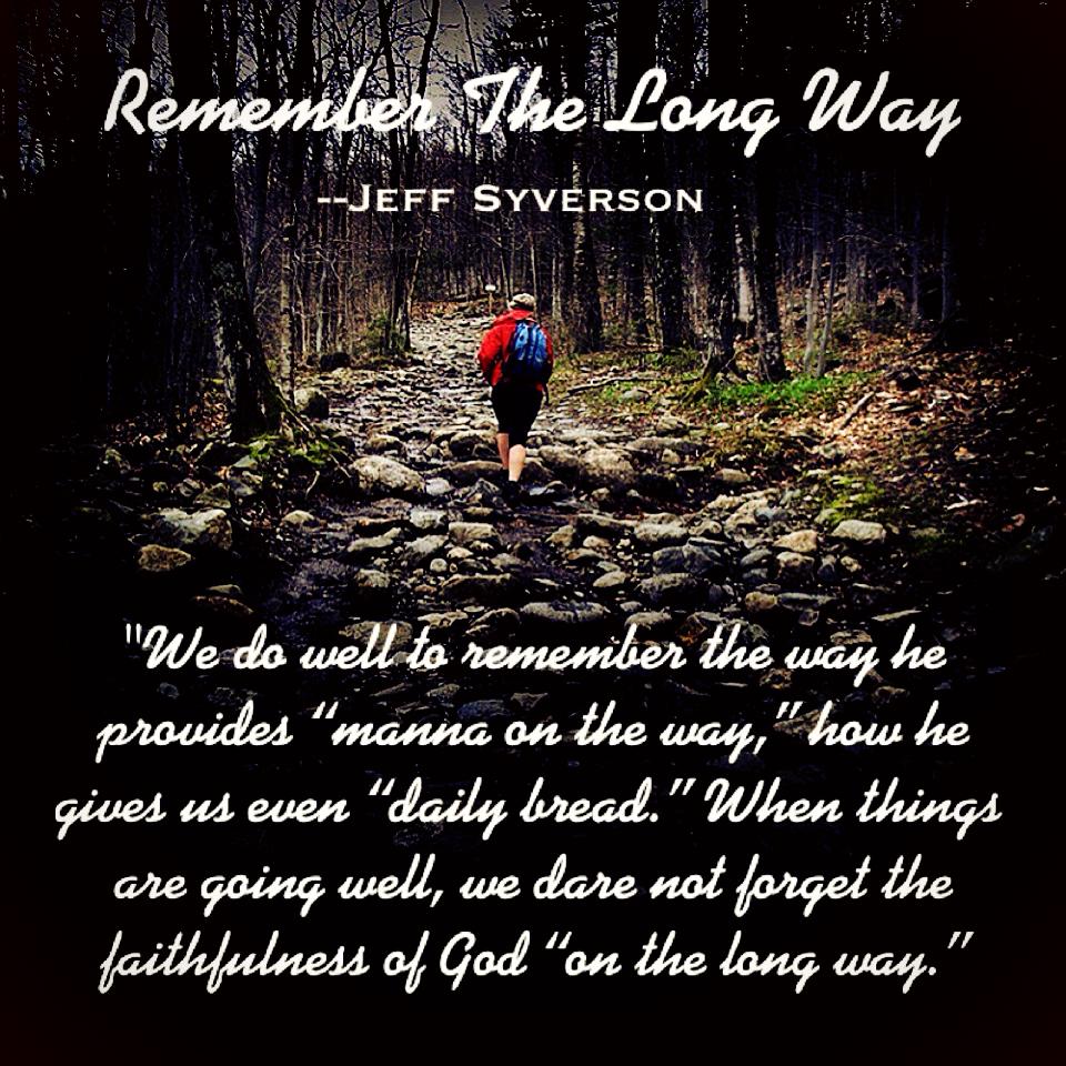 Remember the long way—remember God’s work in your life over the years. It’s so easy to get caught up with what we are doing—become too busy to even notice God’s work in our lives. It’s easy when things get tough to forget all the ways that God has proved himself faithful over the years.