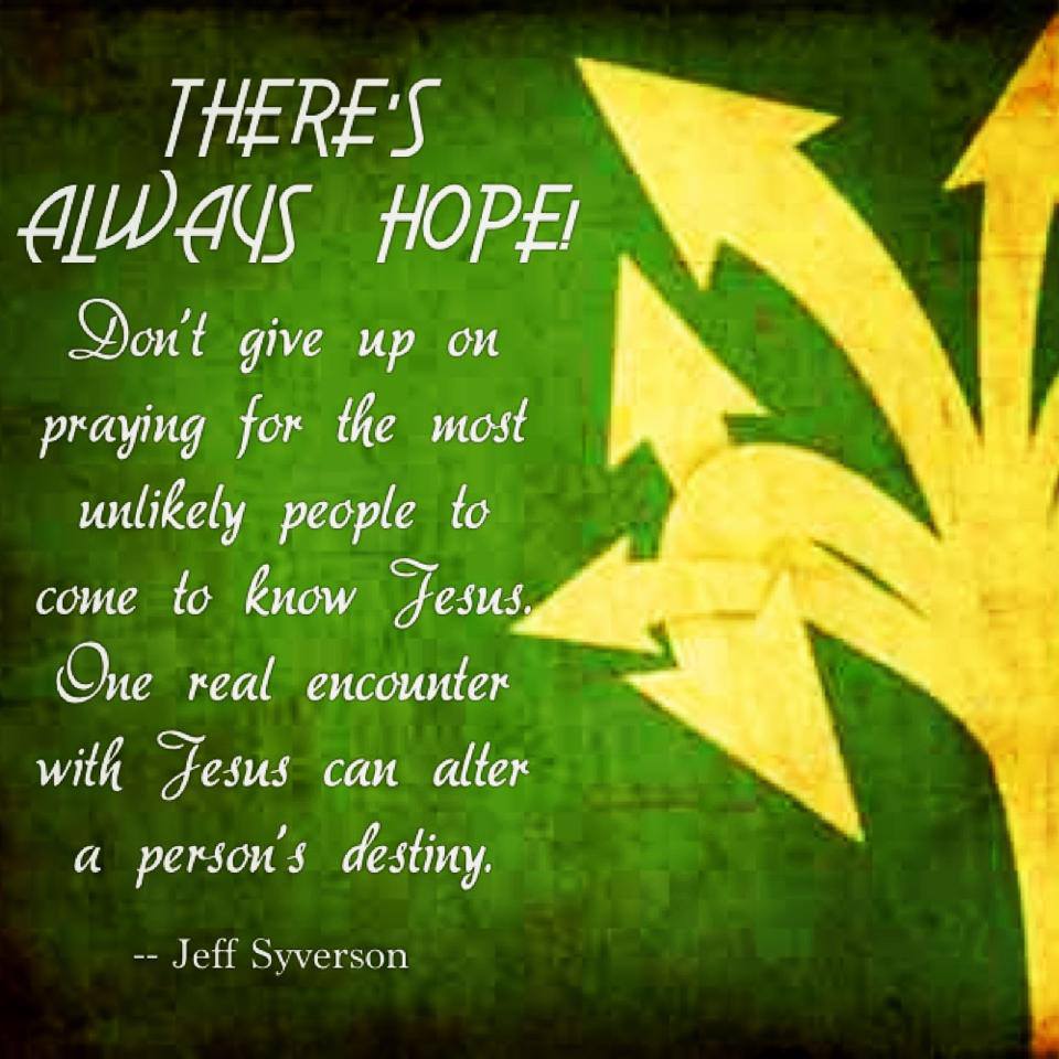 Don’t give up on praying for the most unlikely people to come to know Jesus. One real encounter with Jesus can alter a person’s destiny.