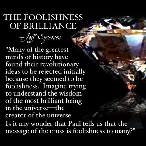 “I know very well how foolish the message of the cross sounds to those who are on the road to destruction. But we who are being saved recognize this message as the very power of God. As the Scriptures say, “I will destroy human wisdom and discard their most brilliant ideas.” (1 Corinthians 1:18-19 NLT)