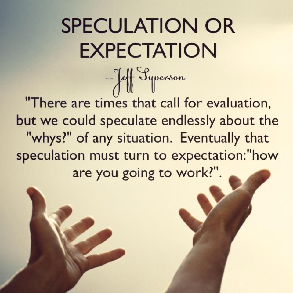 There are times that call for evaluation, but we could speculate endlessly about the “whys?” of any situation. Eventually that speculation must turn to expectation: “how are you going to work?”.