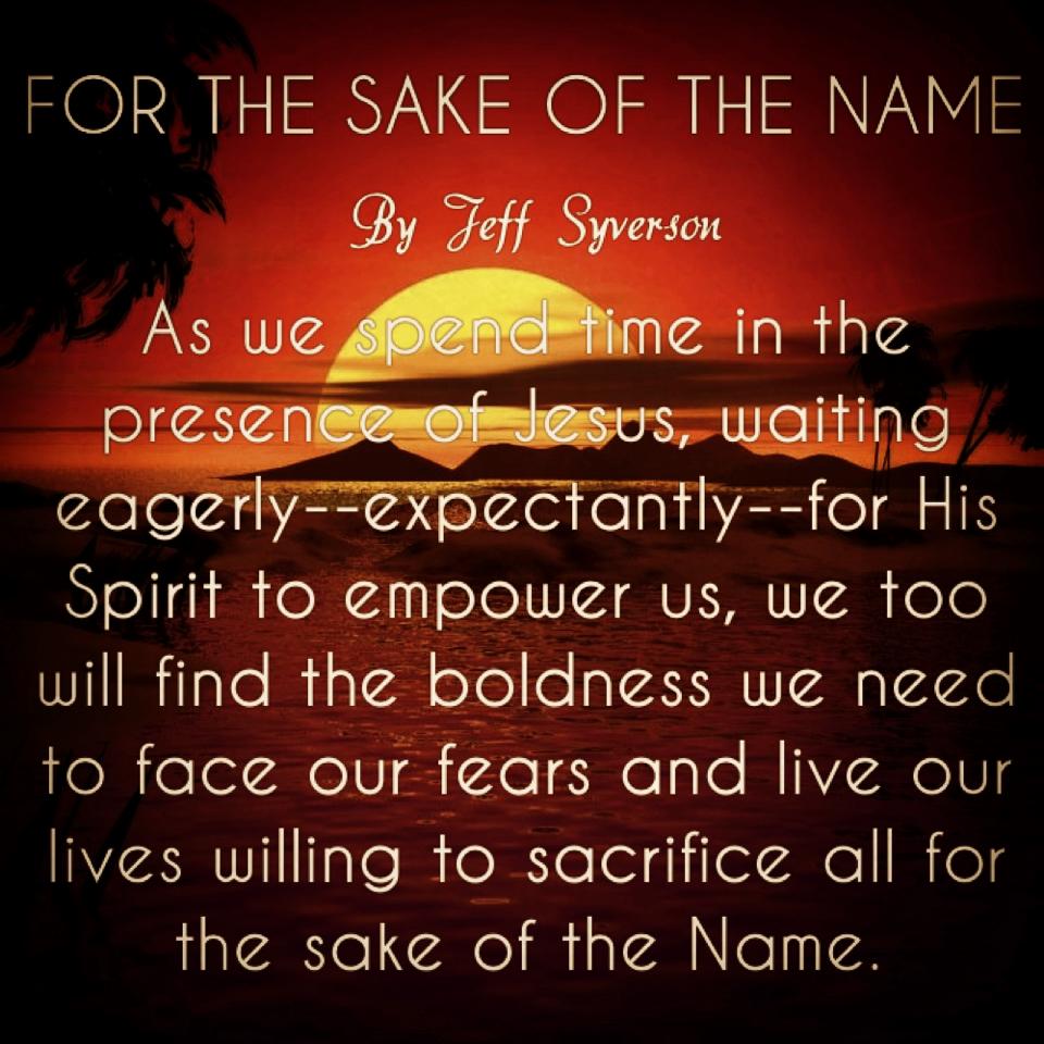 Perhaps that is what we are lacking too. As we spend time in the presence of Jesus, waiting eagerly—expectantly—for His Spirit to empower us, we too will find the boldness we need to face our fears and live our lives willing to sacrifice all for the sake of the Name.