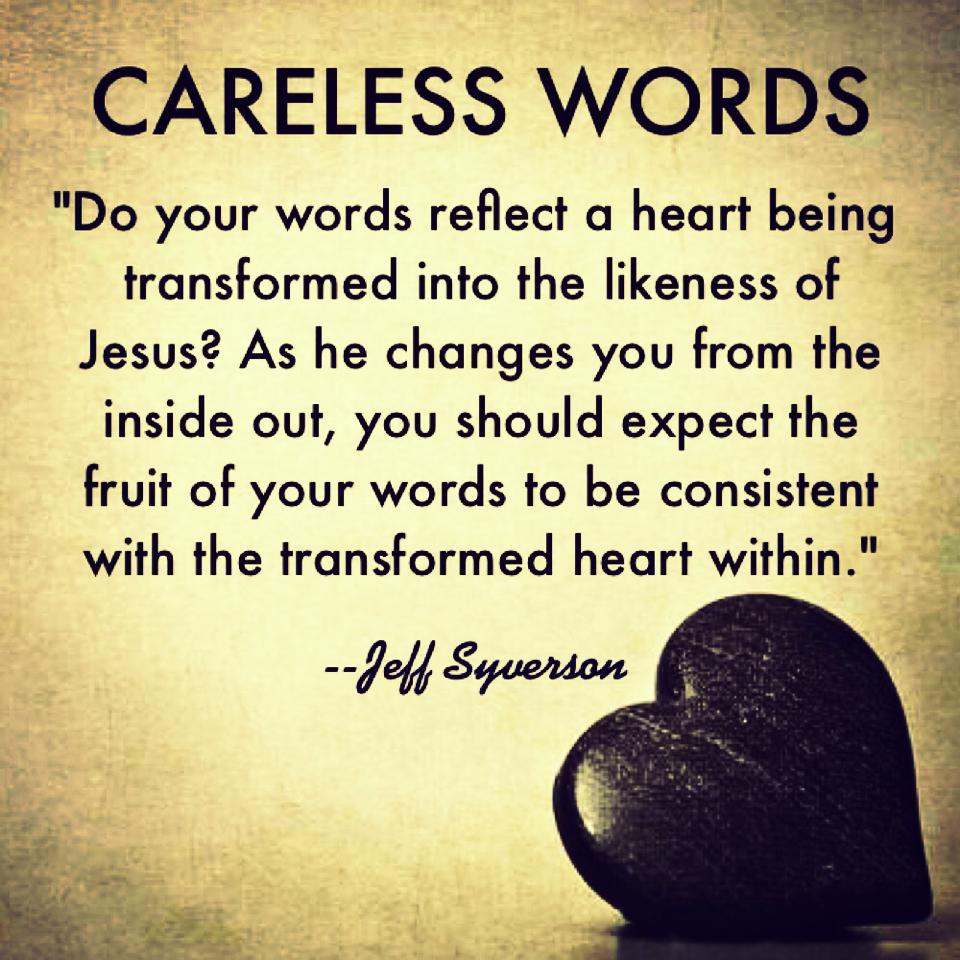 Do your words reflect a heart being transformed into the likeness of Jesus? As he changes you from the inside out, you should expect the fruit of your words to be consistent with the transformed heart within. Open your heart to Jesus. Allow him to transform your heart into his likeness . . . and your tongue.