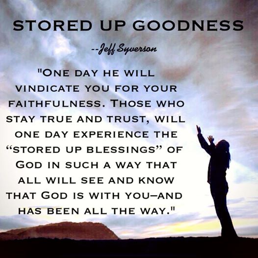 Sometimes following the LORD takes us down a difficult path. People look at us and wonder why God seems not to have noticed our injustice and pain. One day he will vindicate you for your faithfulness. Those who stay true and trust, will one day experience the “stored up blessings” of God in such a way that all will see and know that God is with you, and has been all the way.