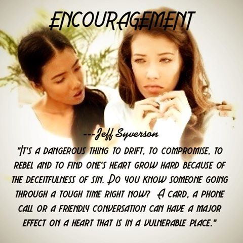 Do you know someone going through a tough time right now? Don’t neglect the ministry of encouragement. A card, a phone call, an email or a friendly conversation can have a major effect on a heart that is in a vulnerable place.