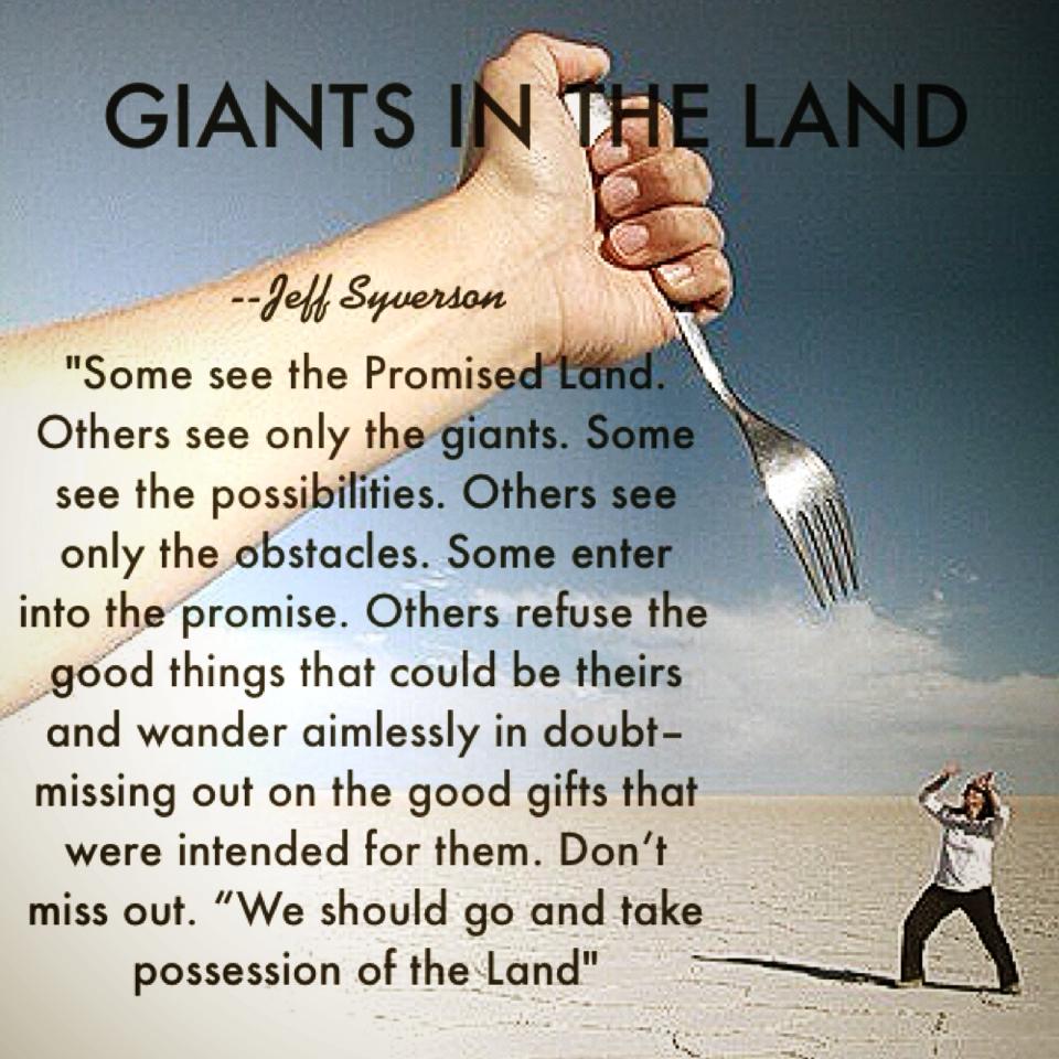 Some see the Promised Land. Others see only the giants. Some see the possibilities. Others see only the obstacles. Some enter into the promise. Others refuse the good things that could be theirs and wander aimlessly in doubt–missing out on the good gifts that were intended for them.