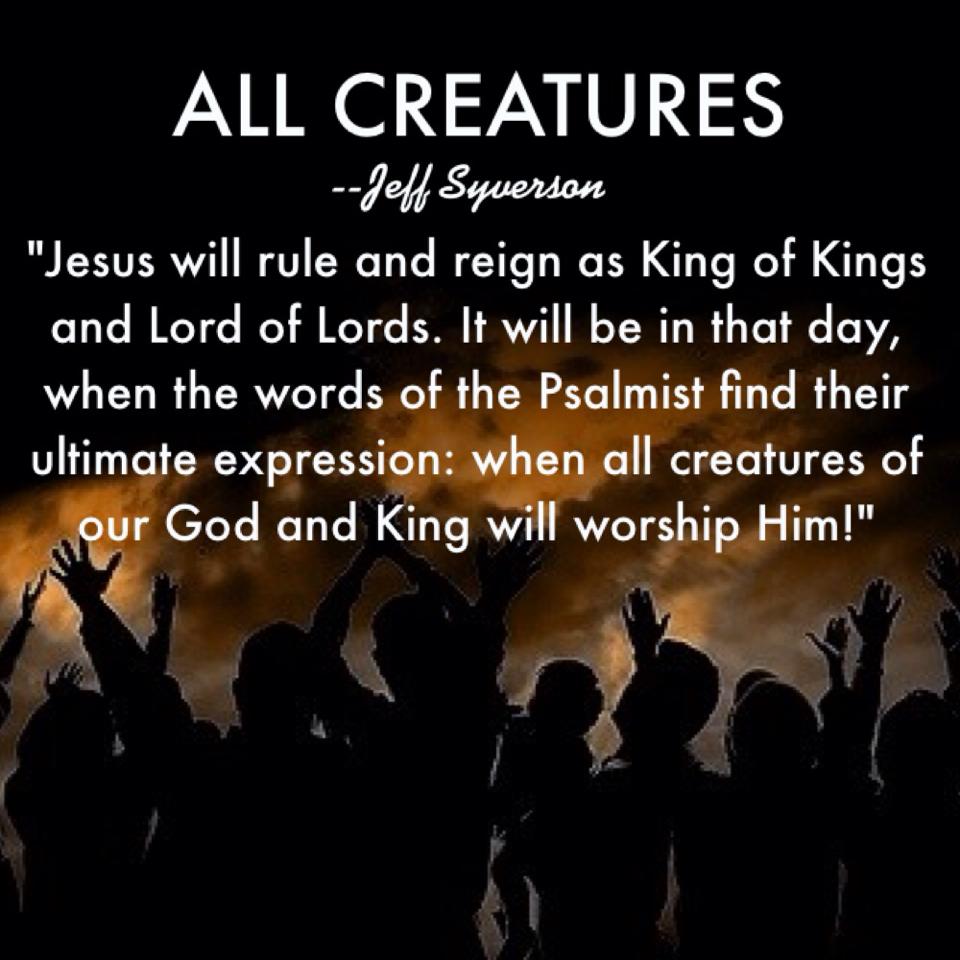 It is interesting how all the readings today come together. Zechariah tells of a “day” when the Lord will rule and reign. Revelation 20 describes the culmination of that day when Jesus will rule and reign as King of Kings and Lord of Lords. It will be in that day, when the words of the Psalmist find their ultimate expression: when all creatures of our God and King will worship Him!