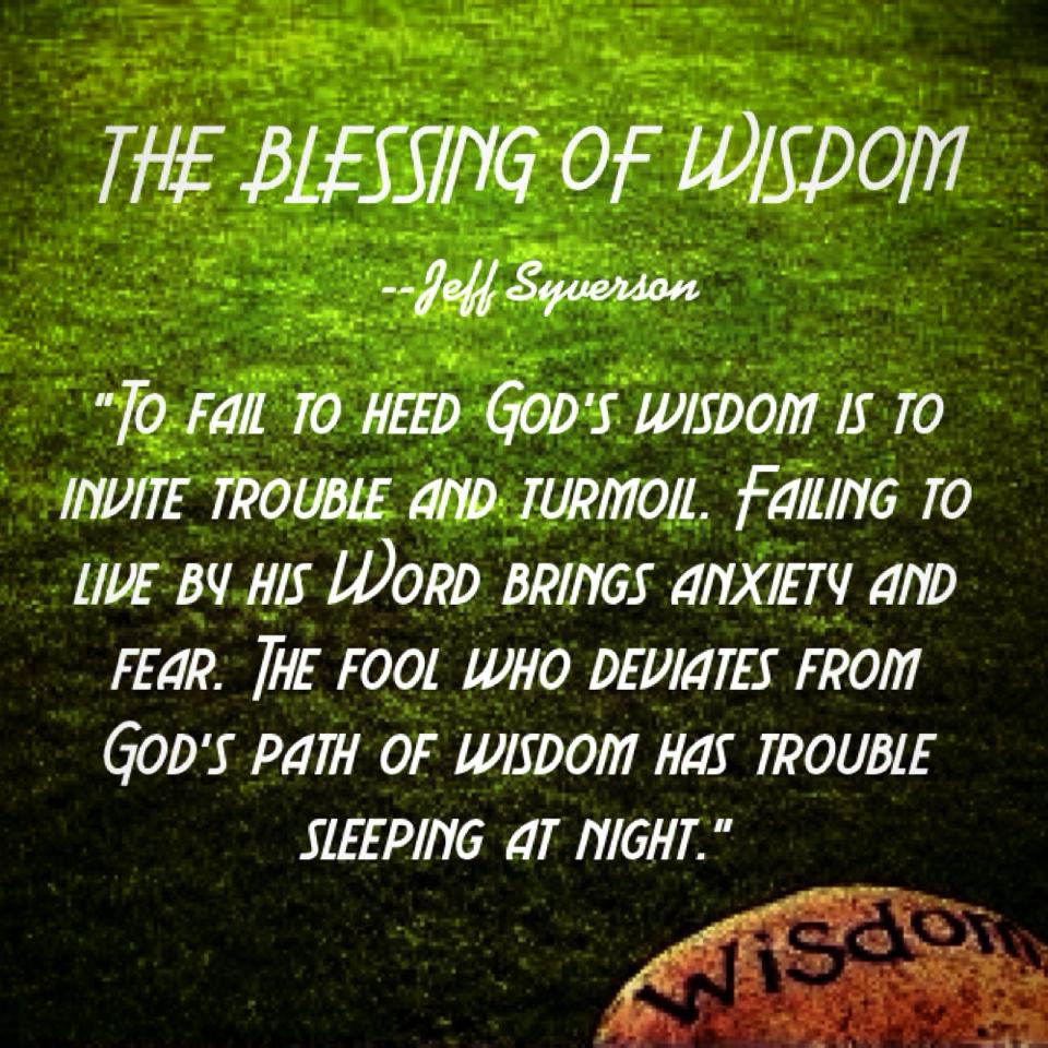 God intends for us to live in the blessing that comes from walking in his wisdom. Knowing and applying these practical principles leads on the right path and keeps us from stumbling. The principles bring the potential for long, full lives lived with honor and under the blessing of God. As we walk in his truth, he becomes our peace and confidence and we are able to sleep sweetly without fear. This is the blessing of walking in God’s wisdom.
