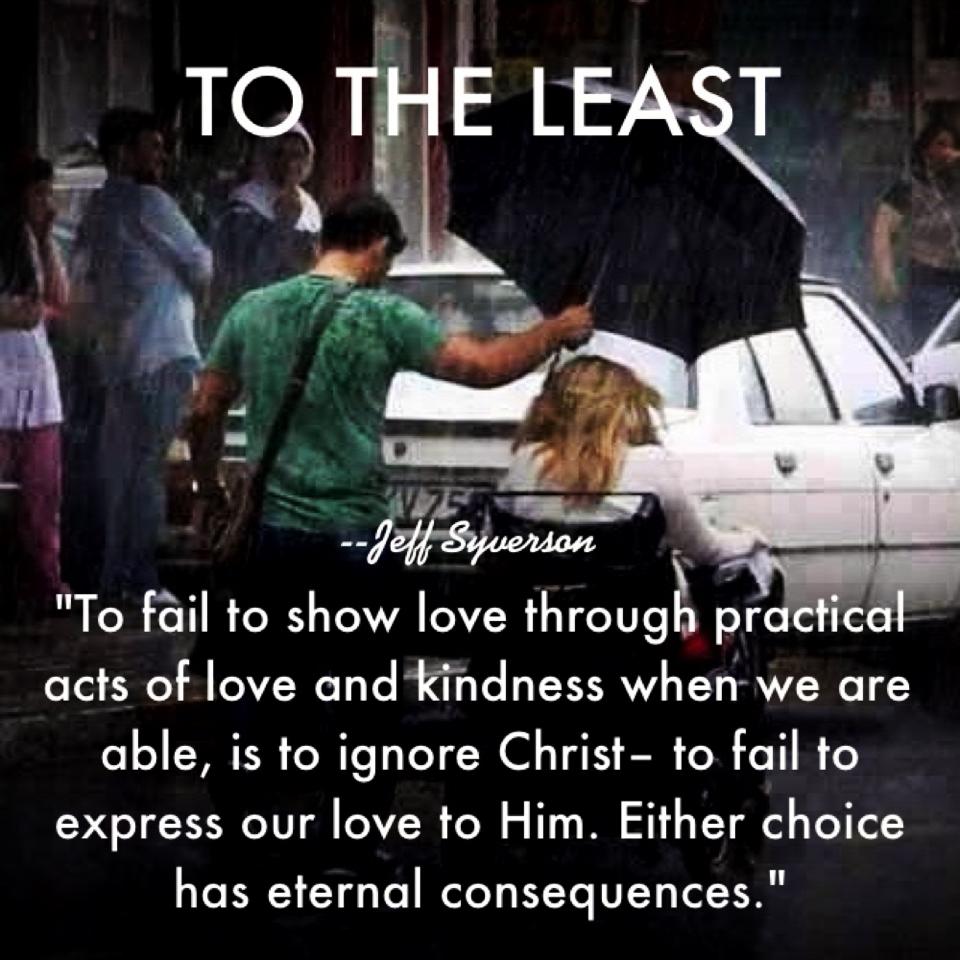 To fail to show love through practical acts of love and kindness when we are able, is to ignore Christ– to fail to express our love to Him. Either choice has eternal consequences (46).