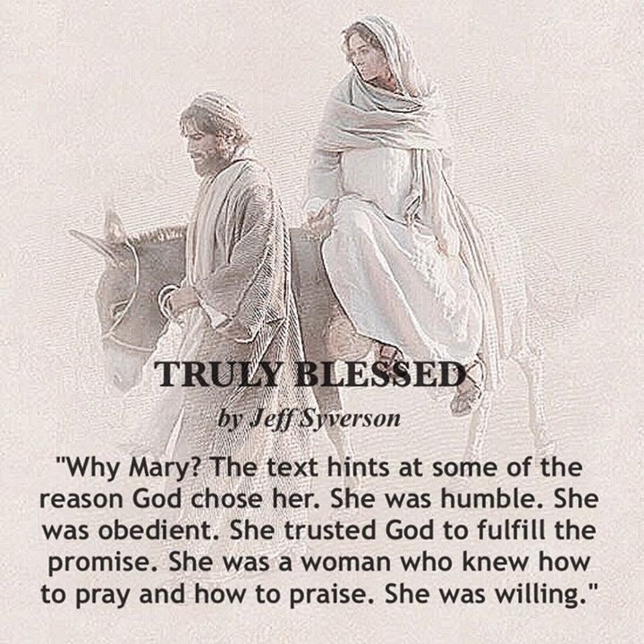 Why Mary? The text hints at some of the reason God chose her. She was humble. She was obedient. She trusted God to fulfill the promise. She was a woman who knew how to pray and how to praise. She was willing.