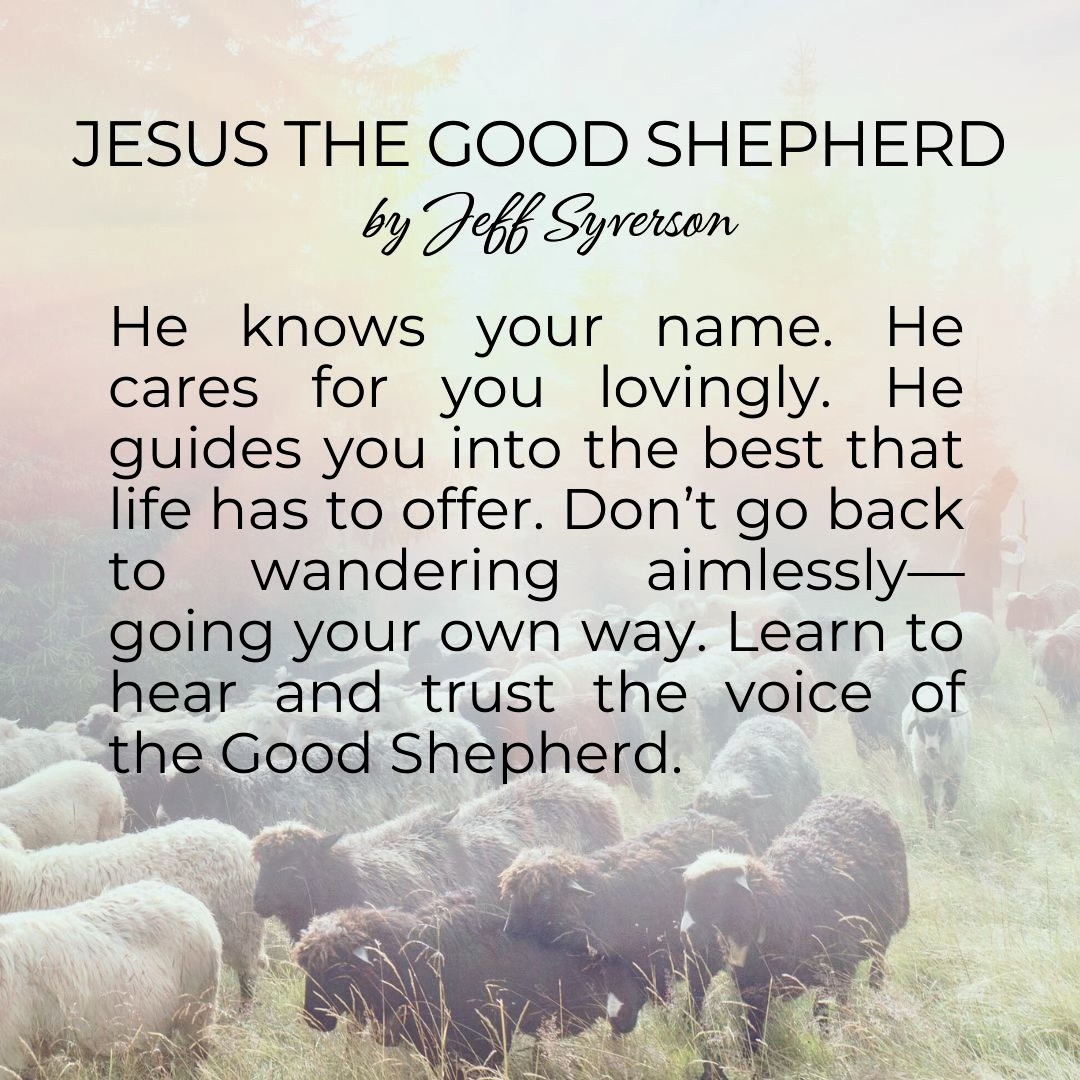 He knows your name. He cares for you lovingly. He guides you into the best that life has to offer. Don’t go back to wandering aimlessly—going your own way. Learn to hear and trust the voice of the Good Shepherd.
