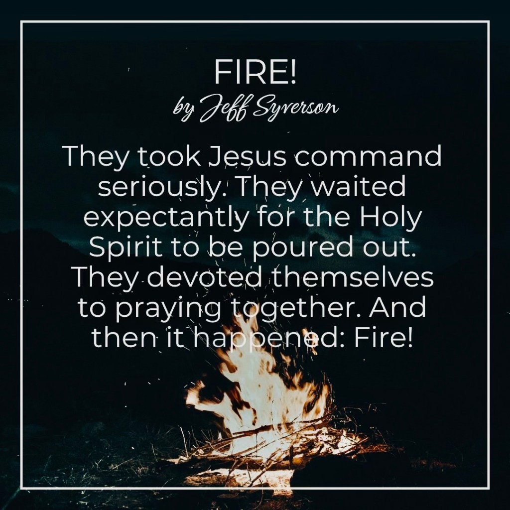 They took Jesus command seriously. They waited expectantly for the Holy Spirit to be poured out. They devoted themselves to praying together. And then it happened: Fire!