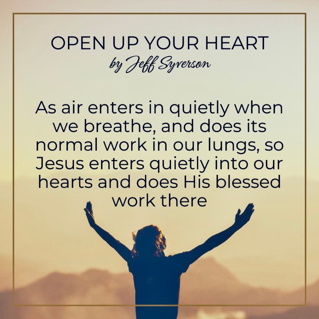 Jesus is waiting at your heart’s door. He is knocking today. He wants to enjoy fellowship with you. Open up your heart to him and enjoy his presence. He wants to be your friend. Open up your heart. Open it wide. Don’t hold anything back. Enjoy your time with him today.