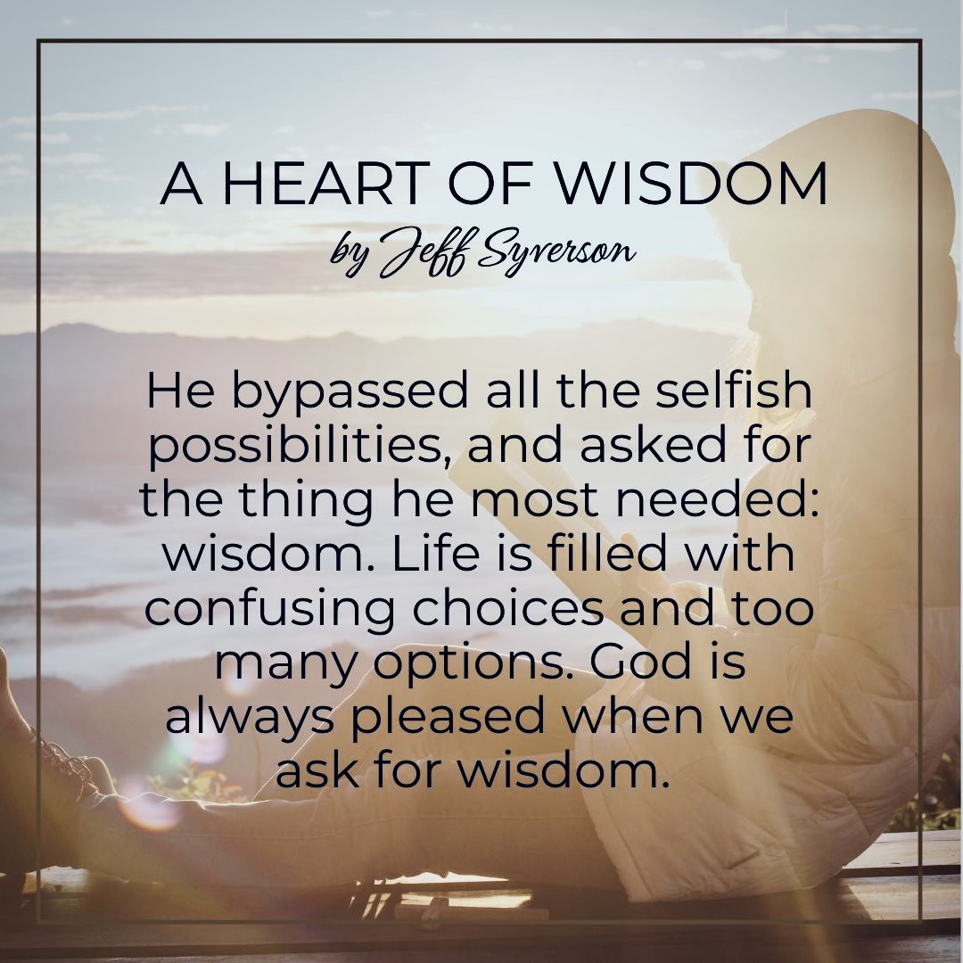 Take the time today to open your heart to Jesus. Tell him all your troubles, your concerns and problems. Ask him your questions. Then listen for his wisdom. Through his word and by the still, small voice of his Spirit, he has some wisdom for you today.
