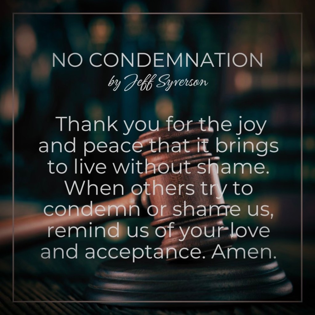 Heavenly Father, thank you for the freedom of living without condemnation. Thank you for the joy and peace that it brings to live without shame. When others try to condemn or shame us, remind us of your love and acceptance. Amen.