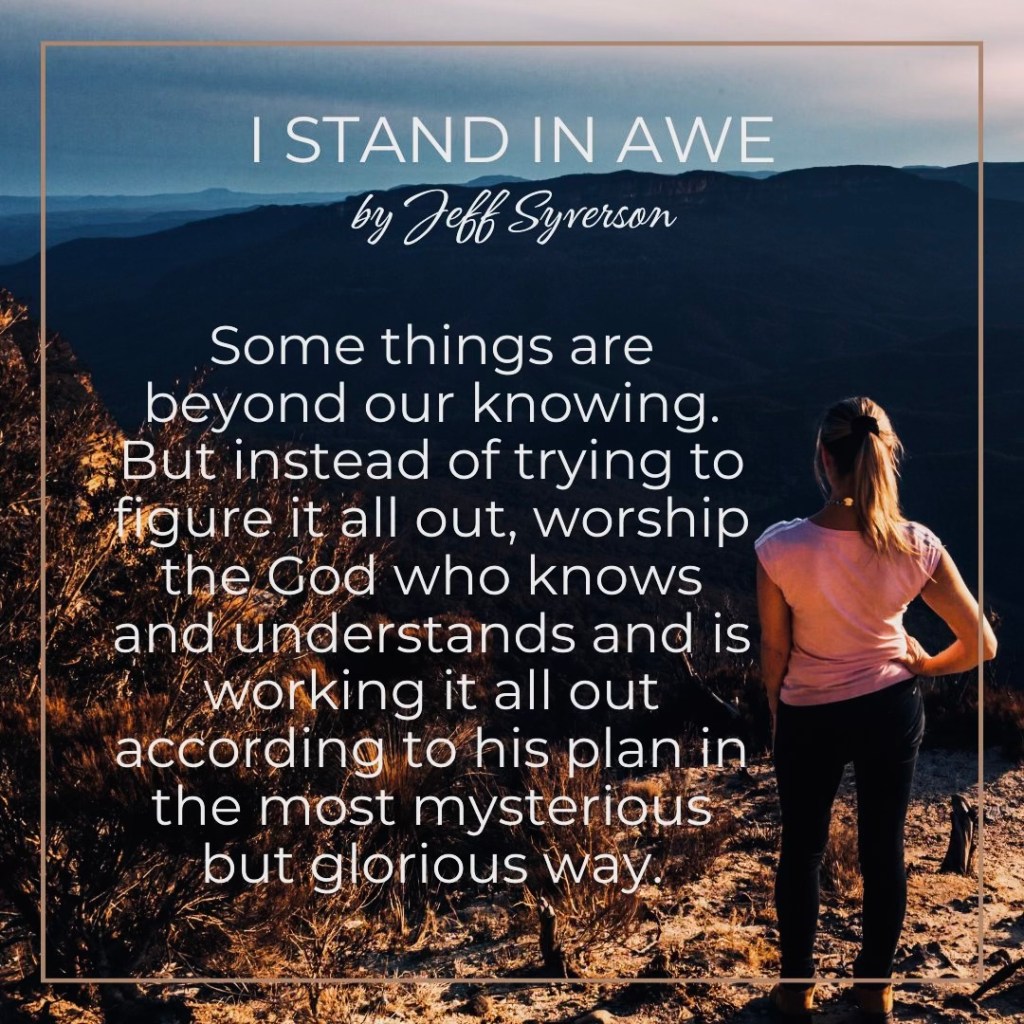 God’s plan is sometimes difficult to understand. Especially when we try to figure out how he’s “working all things together for good.” There’s a lot of mystery there. Some things are beyond our knowing. But instead of trying to figure it all out, worship the God who knows and understands and is working it all out according to his plan in the most mysterious but glorious way.