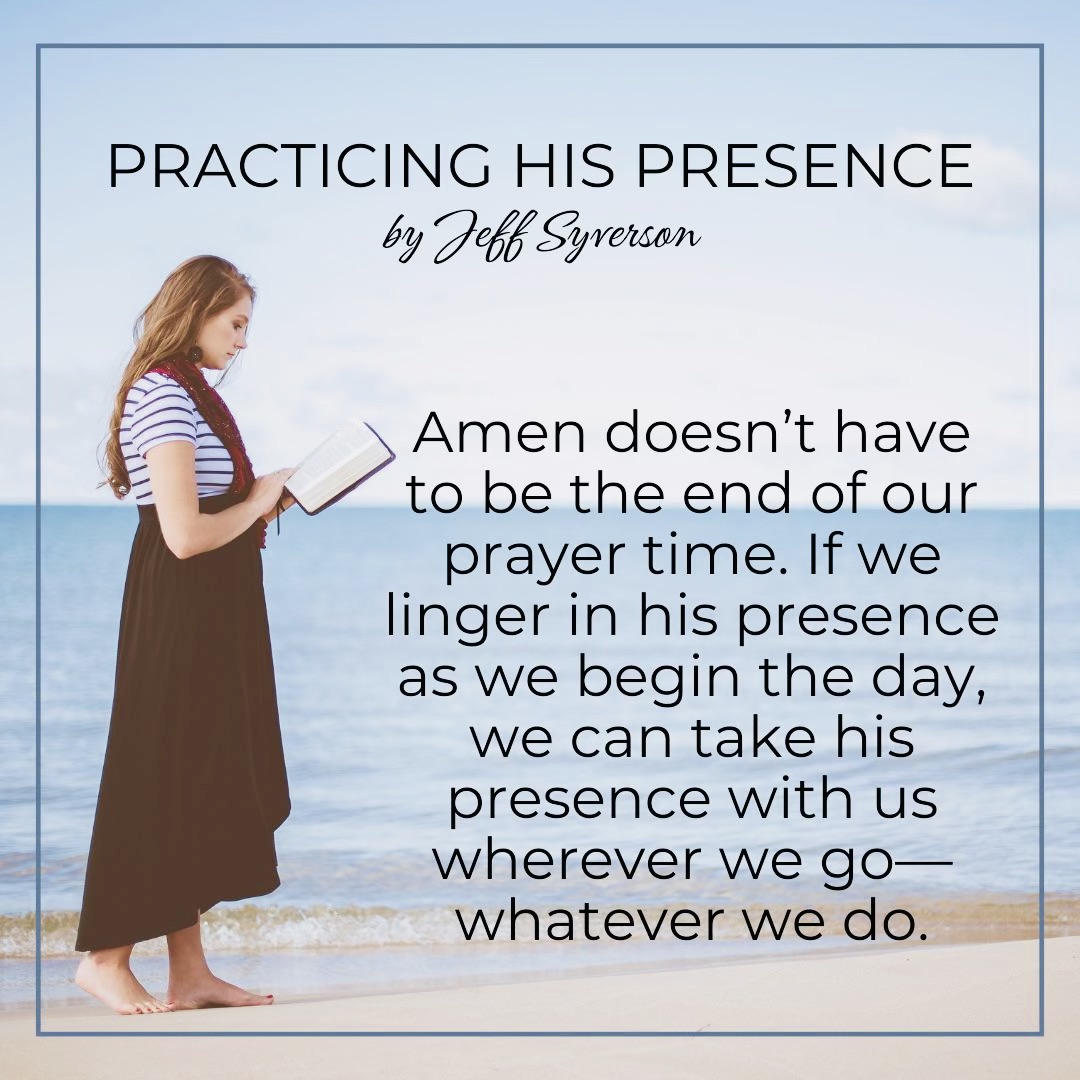 Amen doesn’t have to be the end of our prayer time. It can be only the beginning. If we linger in his presence as we begin the day, we can take his presence with us wherever we go—whatever we do. We can continue to seek his presence—his face. Daily we find Him to be “Emmanuel—God with us.”