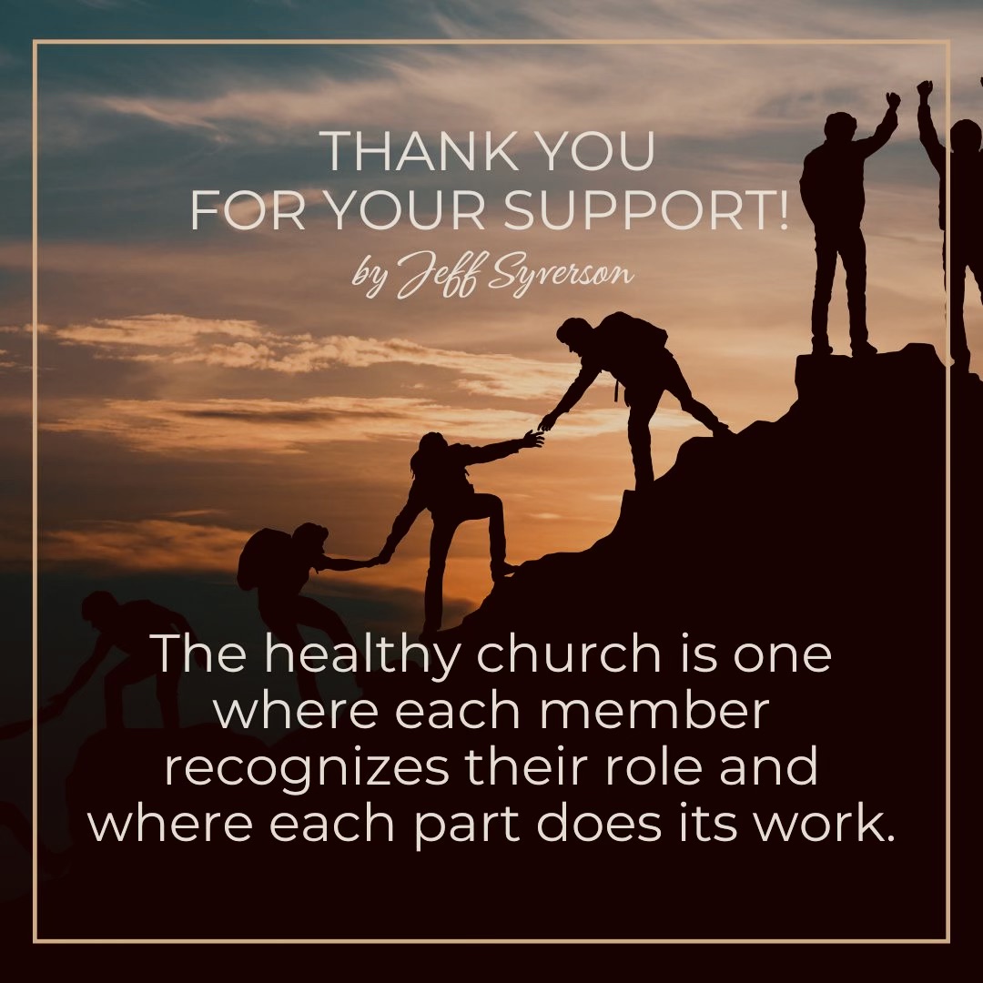 The healthy church is one where each member recognizes their role and where each part does its work. Imagine a body where only one arm was trying to do all the work. Little of value is accomplished. A healthy body requires a coordinated effort of all the parts. What is your part?