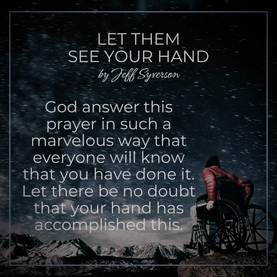 Heavenly Father, work in a way that shows forth your glory. Do something that will cause us to recognize your hand at work in this situation. Let others see your working and be drawn to know you. Amen.