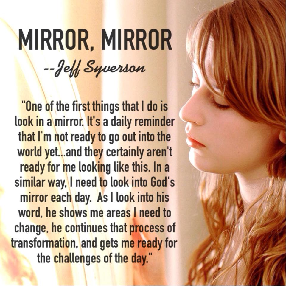 In a similar way, I need to look into God’s mirror each day. As I look into his word, he shows me areas I need to change, places in need of ongoing transformation. This needed daily ritual gets me ready for the challenges of the day.