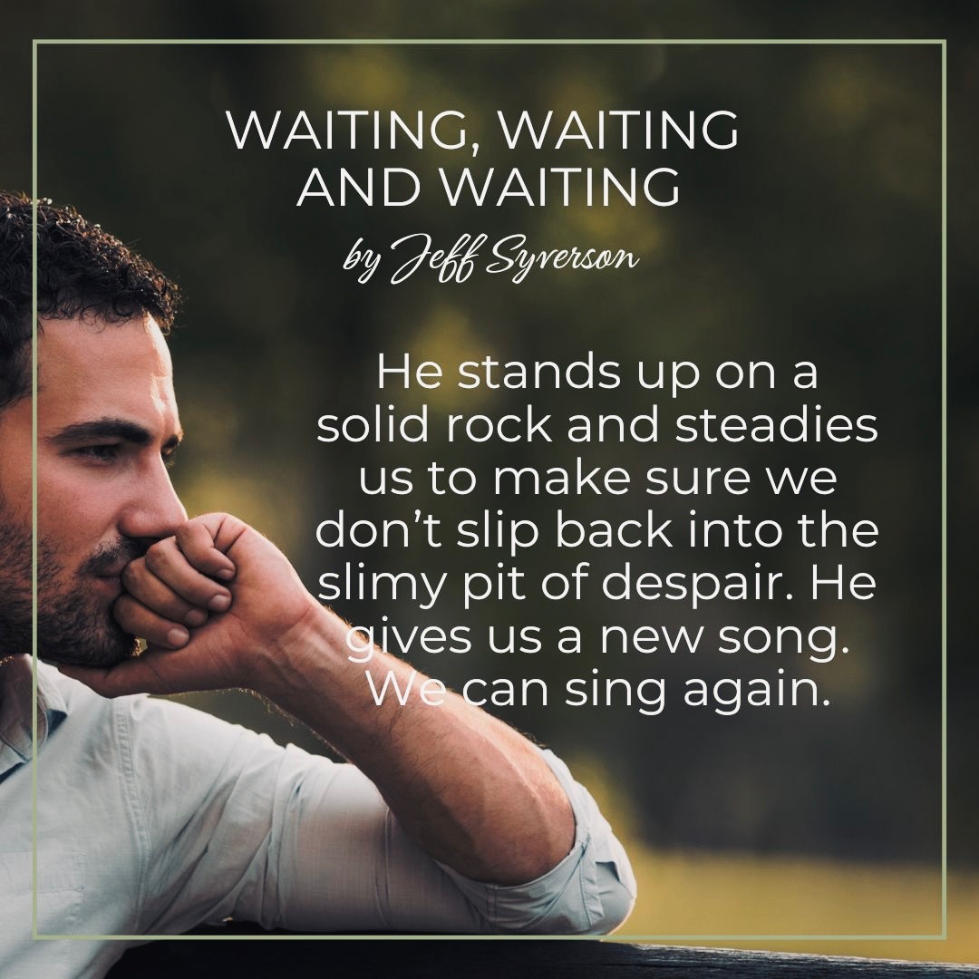 God’s timing and our timetable don’t ever seem to match. We find ourselves at the point of despair–the slimy pit filled with mud and mire (vs. 2). Just about to give up. Sure that we’ve been abandoned.