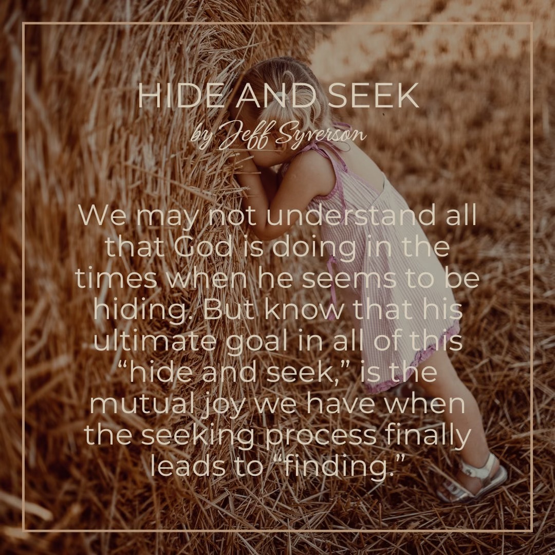 We all have times when we wonder if God is hiding. We have times when we don’t feel the sense of his presence. But know that he is there, hoping that you will remember the childhood delight of seeking him diligently—hoping that you will not give up the search before the laughter and joy of “finding.”
