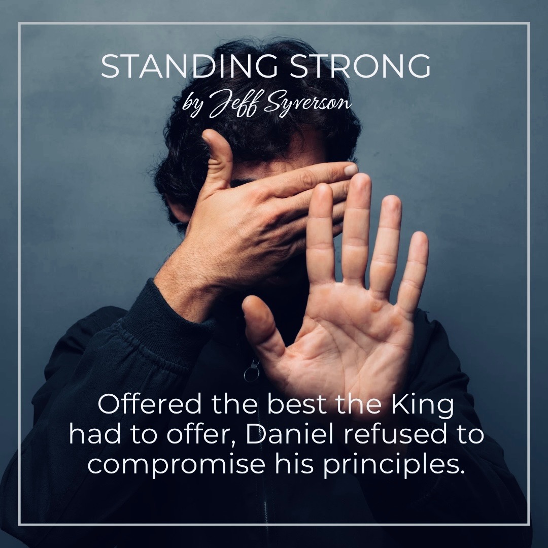 The depth of his integrity and unwillingness to compromise is seen already in the first chapter when he refuses the king’s food and wine. Offered the best the King had to offer, Daniel refused to compromise his principles. So he asked to be given vegetables and water.