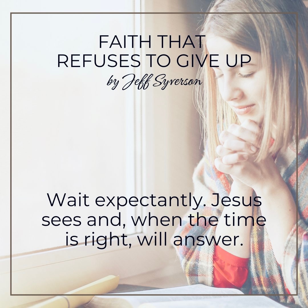 Don’t give up. Persist in your faith. Press on with your prayers. Wait expectantly. Jesus sees and, when the time is right, will answer.
