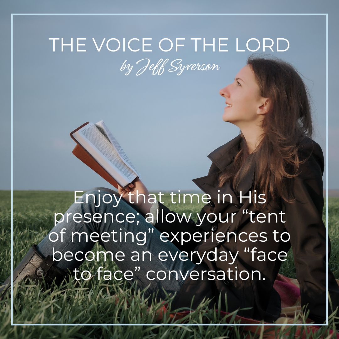 Open your heart to Jesus, pour out your heart to Him. Come expecting to hear the voice of the LORD. Remain there quietly and don’t be surprised to hear the “still small voice”–the gentle whisper of the Spirit. Don’t hurry off; take the time to develop intimacy. Enjoy that time in His presence; allow your “tent of meeting” experiences to become an everyday “face to face” conversation.