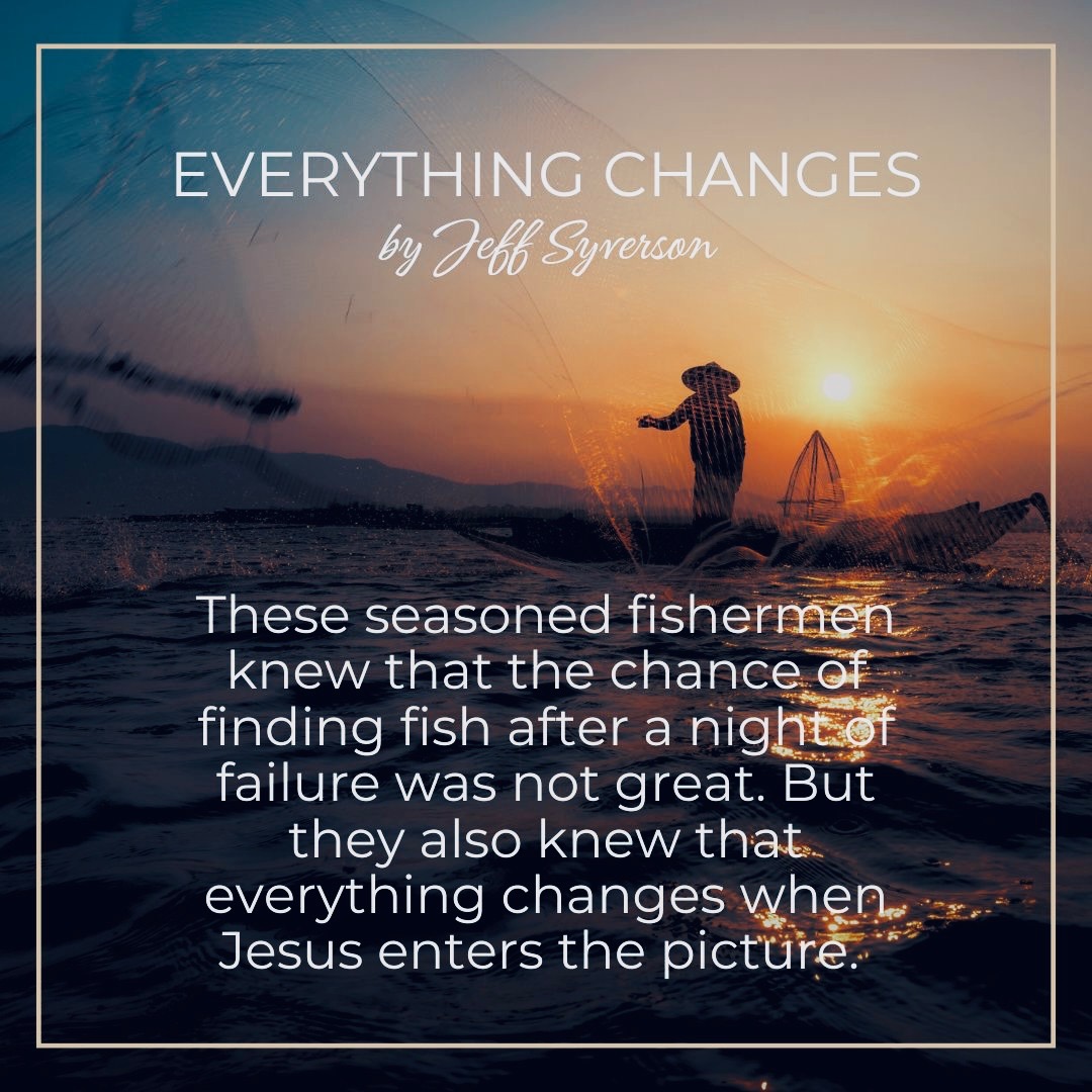 But instead of second guessing him, they obeyed. These seasoned fishermen knew that the chance of finding fish after a night of failure was not great. But they also knew that everything changes when Jesus enters the picture.