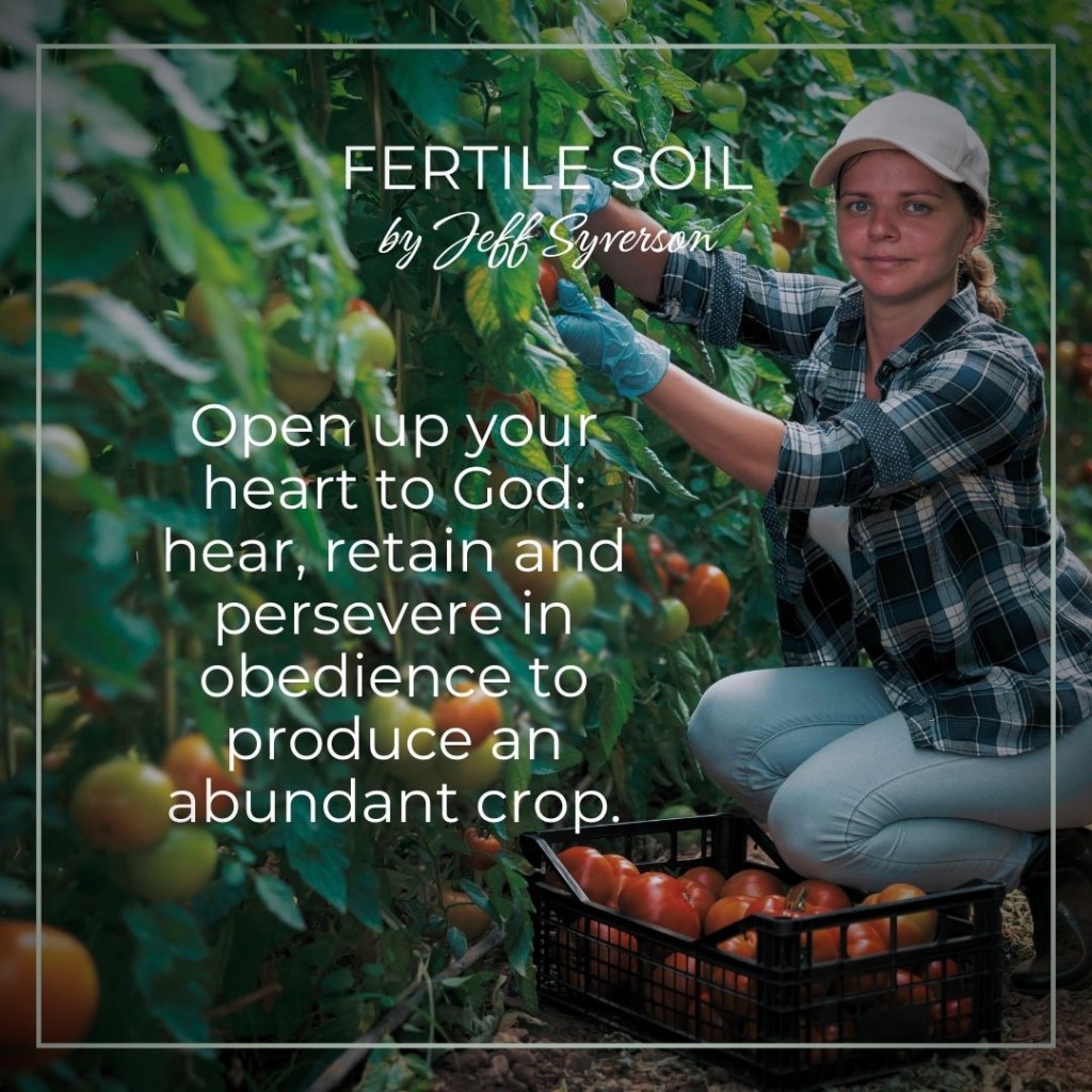 Don’t allow God’s word to be stolen from you. Don’t allow times of testing to choke out the word. Don’t allow the pursuit of pleasure or wealth or the worries of this life keep you from being productive. Open up your heart to God: hear, retain and persevere in obedience to produce an abundant crop.